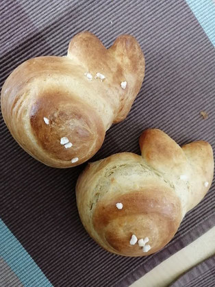 Teig noch für die Ohren nehmen indem ihr diesen mit einer Schere ein bisschen aufschneidet und schon habt ihr ein Häschen 🌼😁 mit